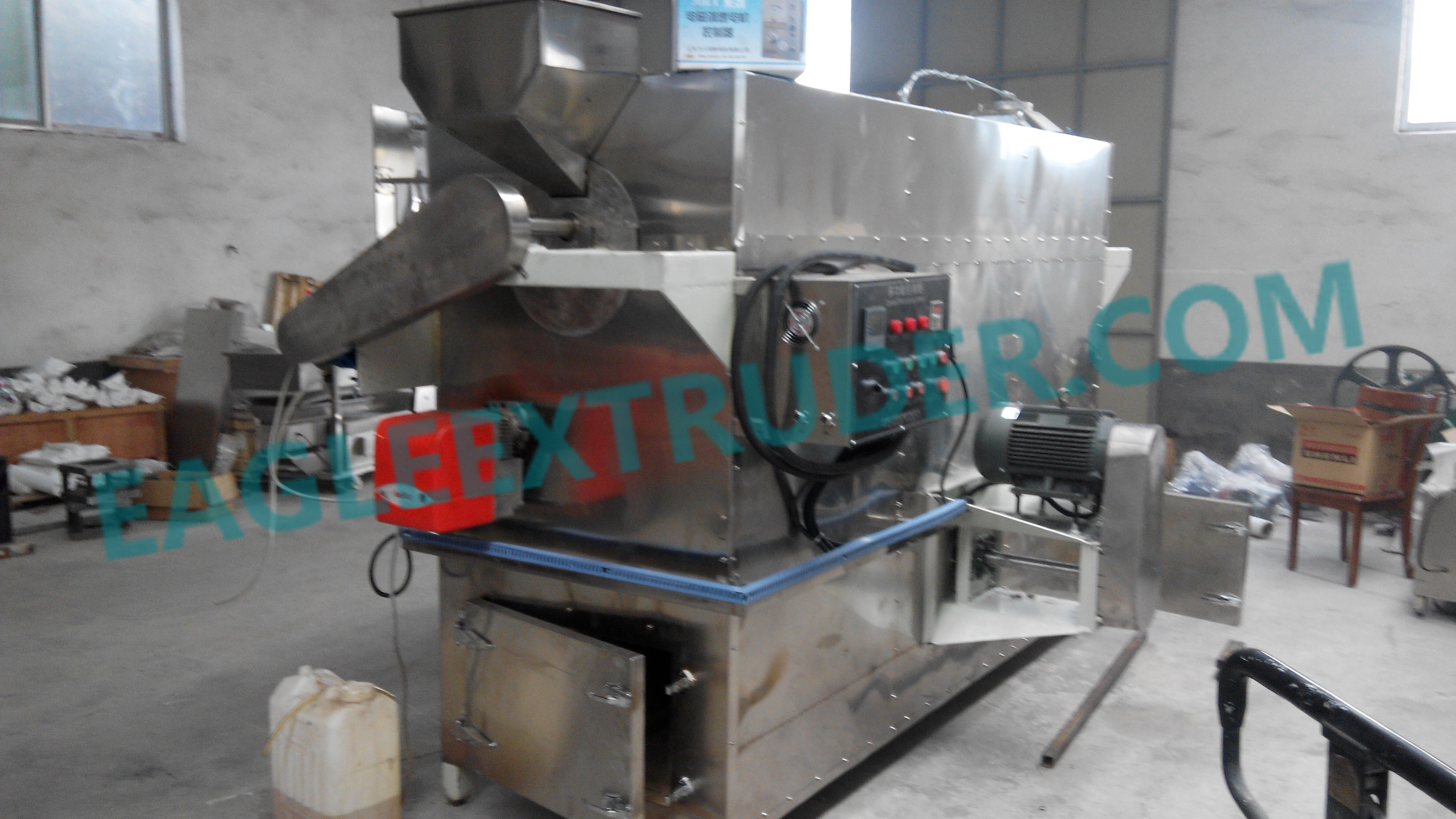 攪拌機(jī)-輸送機(jī)-膨化機(jī)-振動(dòng)篩-壓片機(jī)-烘干箱-高溫膨化機(jī)-噴糖機(jī)-冷卻機(jī)