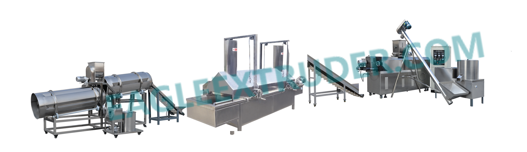 拌料機--輸送機—膨化機--輸送機--油炸鍋--提升機--調味機